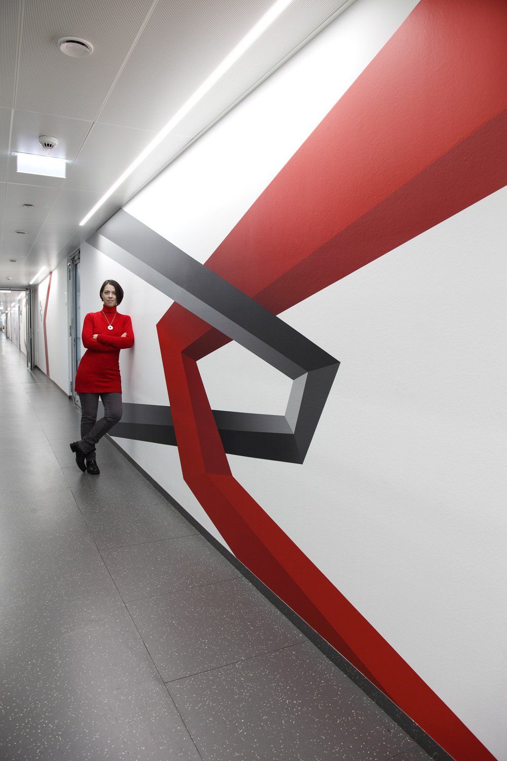 I am using linear and geometric structures along with figurative elements and create a subtile yet strong connection and relashionship between architecture and people, so that both can connect and ground in a new way. I redifine the space by giving it a unique signature, that lifts it out of the generic state and gives it a distinct human dimension.