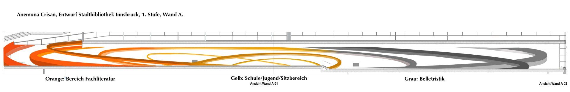As a final point, the idea of connection - the connection between the two communities, the citizens and employees - is taken up again. As a reference to the building authority/plan archive located on this floor, the two lines also have an architectural aesthetic.