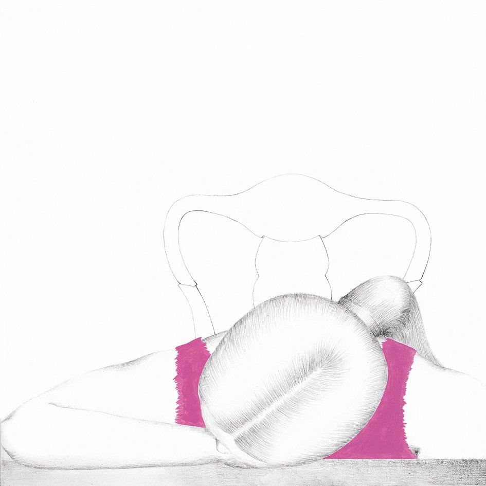 Das Thema des Überwindens einer Dichotomie setzt sich über die Problematik Realraum versus Bildraum, Stereotyp versus Individuum, belebt versus unbelebt, Bedrohung versus Schutz fort und kommt in der technischen Herangehensweise an die Zeichnung wieder zum Vorschein. Auch hier bestimmt die Verbindung zweier Gegenpole das Bild: Zeichnung und Malerei. Der Kontrast zwischen gezeichneten und gemalten Zonen löst sich durch die stufenweise Wahrnehmung der Bilder im Raum auf: Blickt man aus größerer Entfernung, sind zunächst die farbigen Stellen wahrnehmbar, nähert man sich den Bildern, werden nach und nach die zarten gezeichneten Zonen – meist ist dies die Figur – erkennbar. Auf diese Wiese wird die Bewegung der BetrachterInnen zu einem immanenten Element der Zeichnungen, die nur durch diese Bewegung vollständig erfahrbar sind. Die Bilder entstehen in einer Mischtechnik aus Bleistift und Acrylfarbe nach präzisen Vorskizzen. Leinwand dient dabei als Bildträger und wird aufwendig vorbehandelt, mehrmals grundiert und geschliffen, sodass sie in der Struktur einer groben Papierober- fläche entspricht. Das Grundieren ermöglicht erst das Auftragen der Bleistiftszeichnung und stellt den Hintergrund, den eigentlichen Bildraum her. Die Formate variieren von Großformaten bis zu Kleinformaten. Einzig die lebensgroße Darstellung der Figur ist allen Formaten gemein, seien dies in den Kleinformaten auch nur Fragmente, wie Finger, Stirn oder Haare.