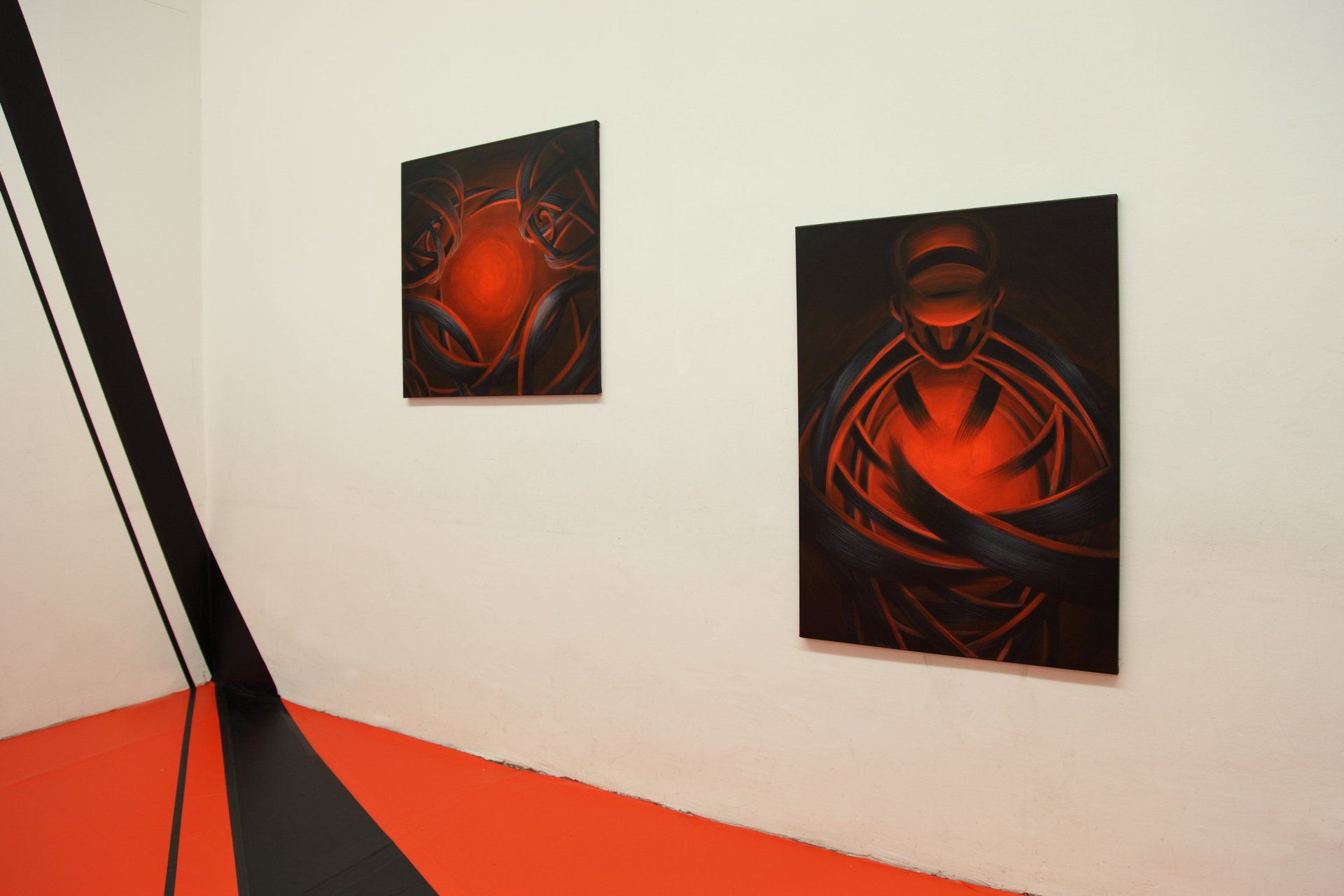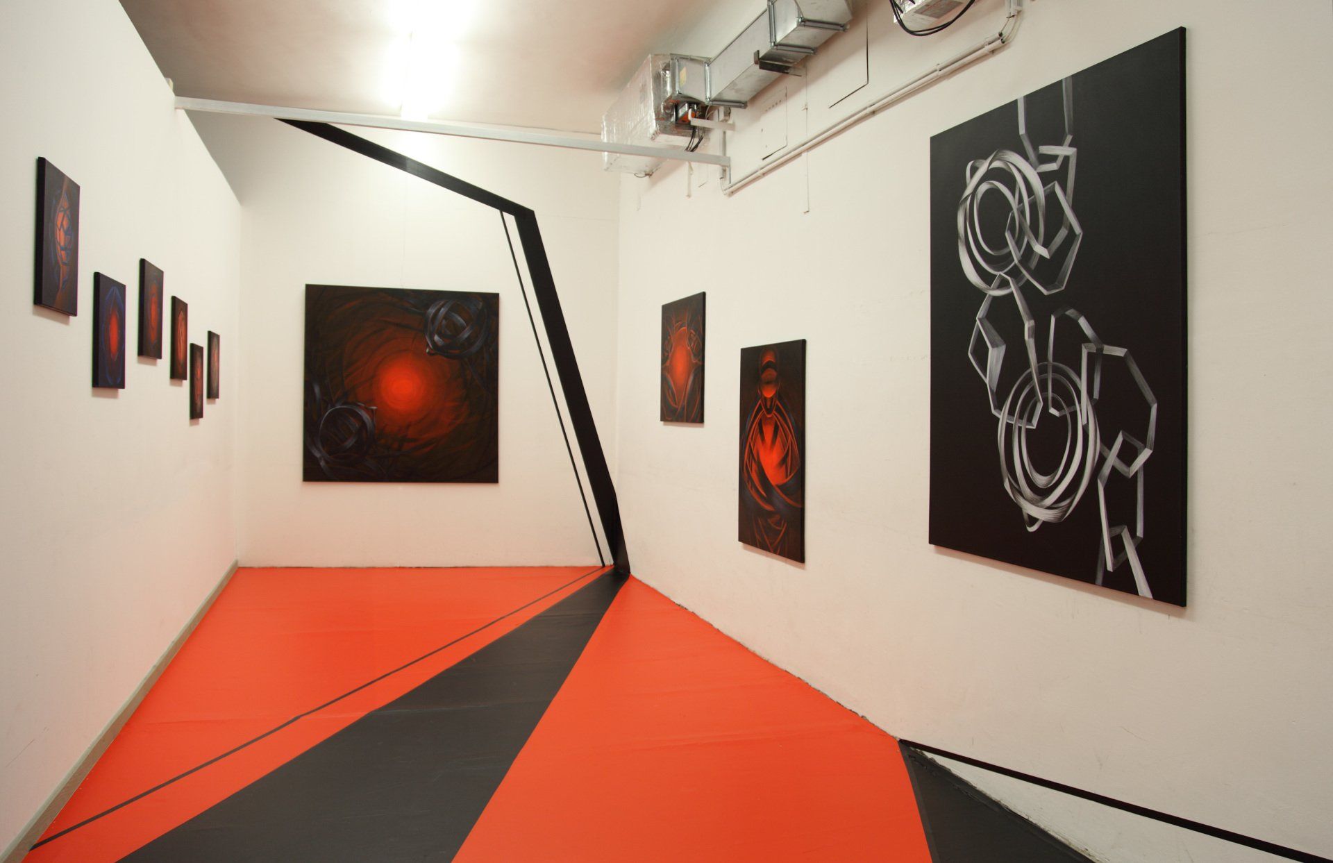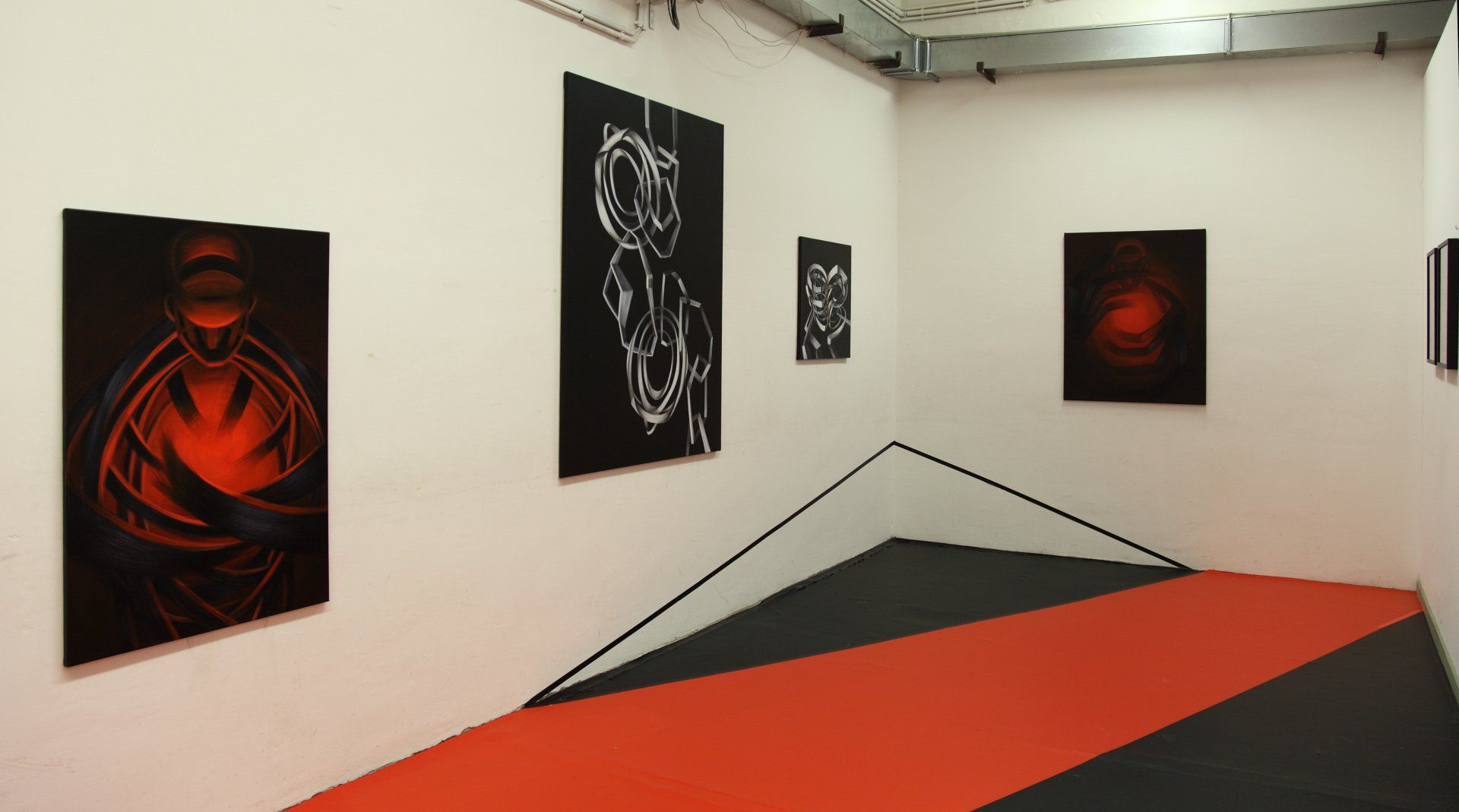 Kunst an alternativen, heruntergekommenen Orten zu zeigen ist en vogue, und so hat auch die Kunstmesse Art Vienna 2018 dazu eingeladen, Ausstellungen in den sogenannten "Cabins" (regulär als – sehr herunter gekommene – Garderoben der Wiener Hofburg genutzt) – zu zeigen. Als ortsspezifisch arbeitende Künstlerin habe ich diese Einladung angenommen und für diese Cabin ein eigenes, raumgrefendes Display geschaffen, das wie eine Bühne für die Inszenierung der Bilder dient und ihnen damit ein Setting für die Erzählung einer Geschichte gibt. Die BesucherInnen werden beim Durchschreiten Teil dieser Erzählung, dieses stummfilmartigen Ensambles, das an Fritz Lang's Metropolis erinnert.
