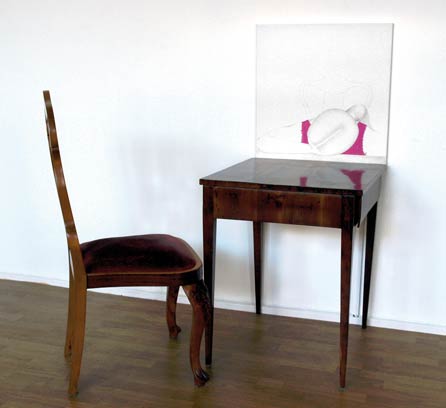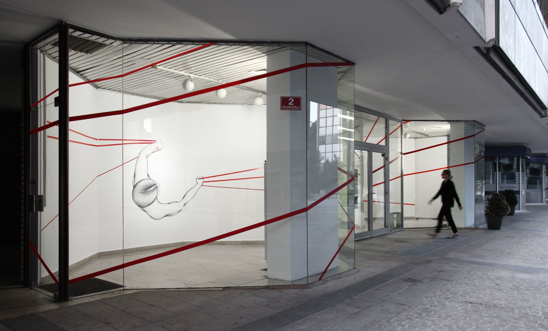 Dreiteilige Installation im Ausstellungsraum und im öffentlichen Raum, Mischtechnik.