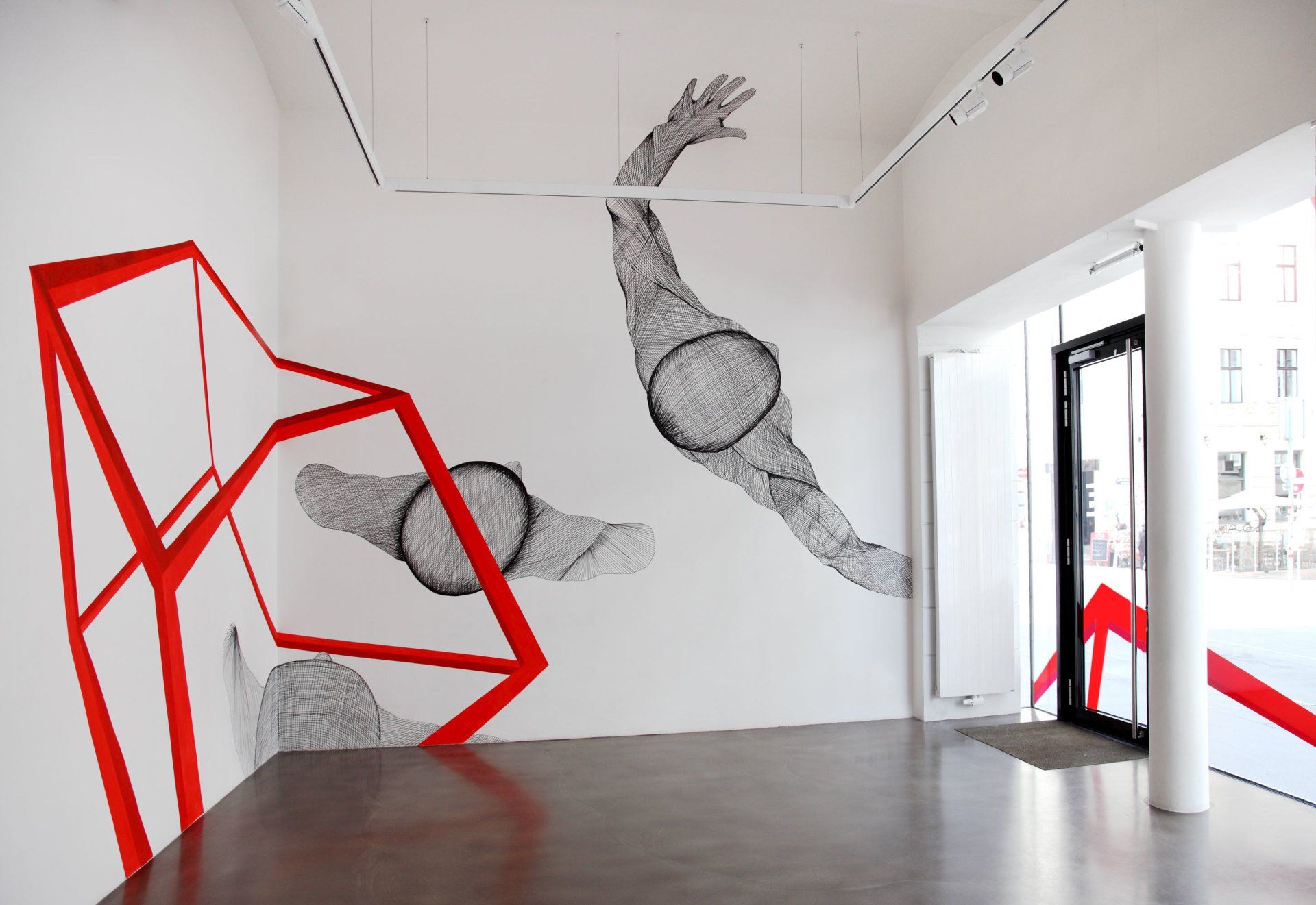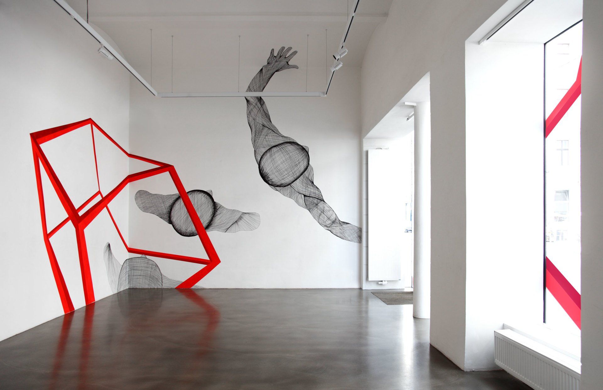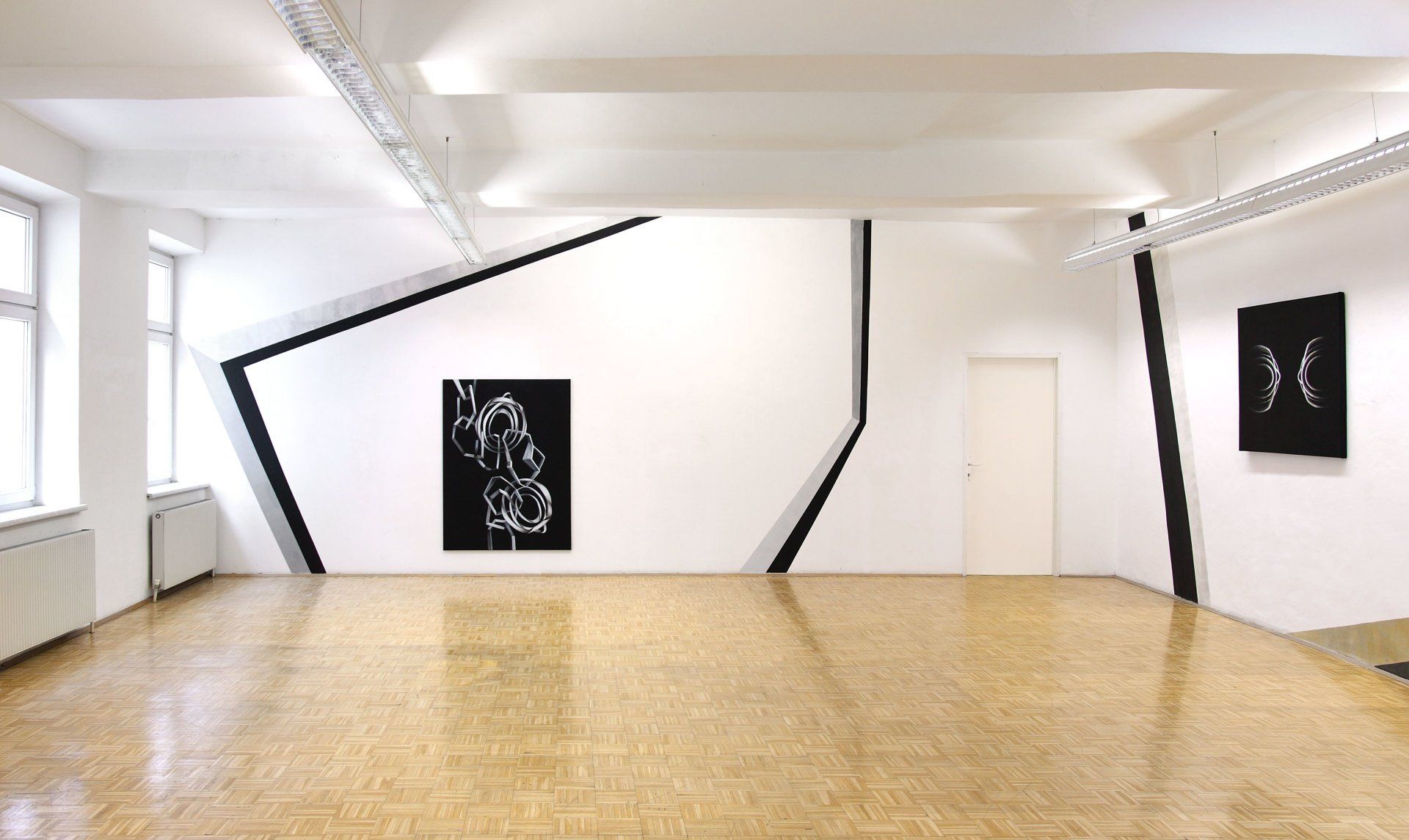 Installation, Bilder und Wandmalerei, Ausstellungsansichten.