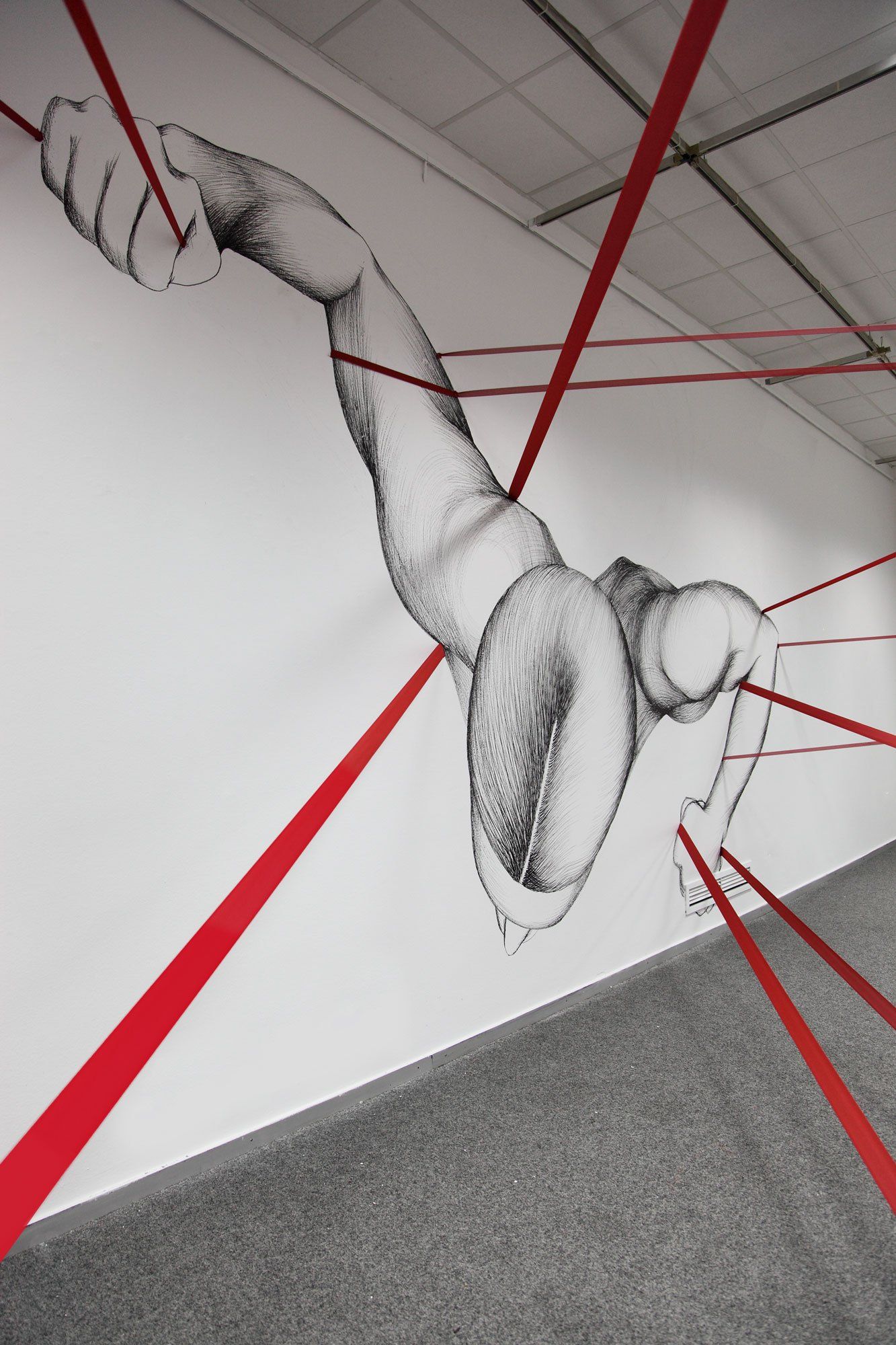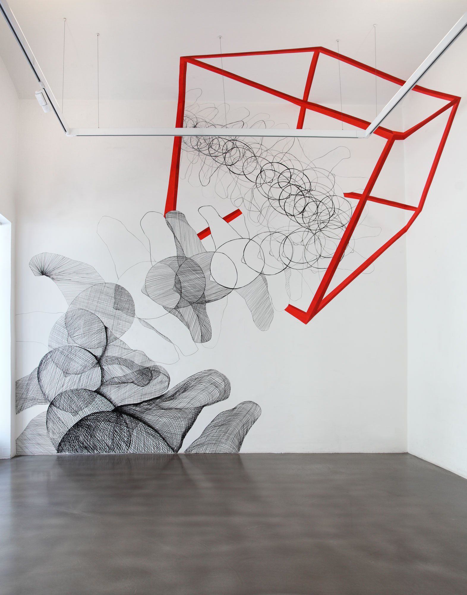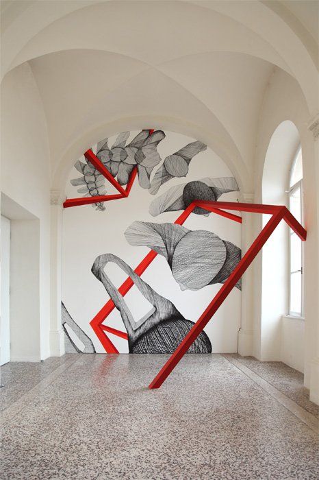 Installation, Bilder und Wandmalerei, Ausstellungsansichten.