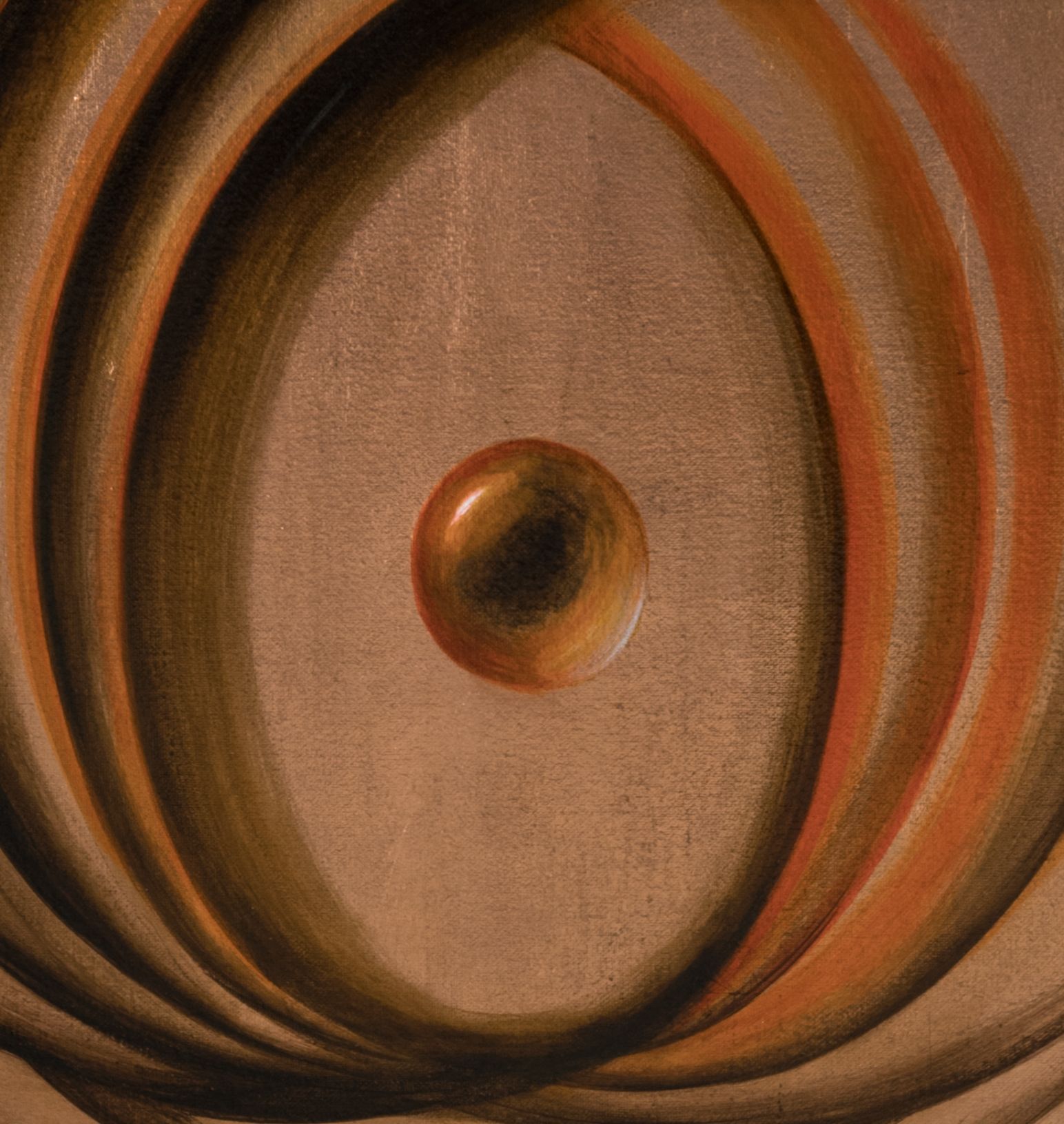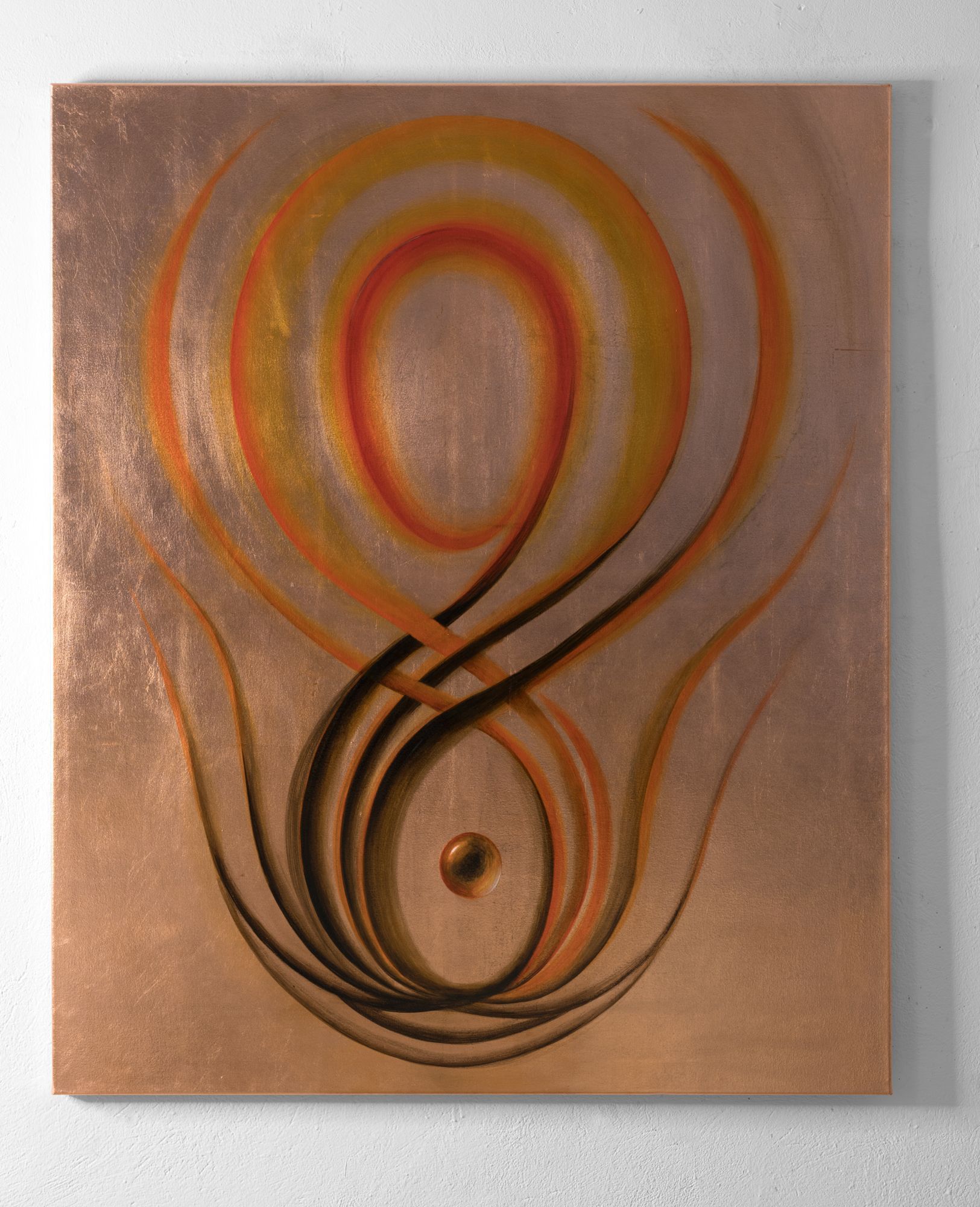 Aurora (II), ink, acrylic, on copper leaf on canvas, 120 x 100 cm, 2024.