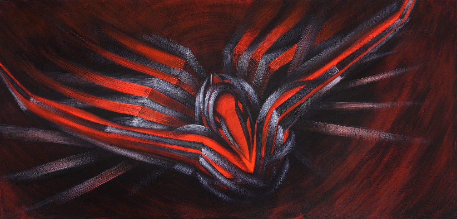 Anemona crisan, phoenix, Tbush on canvas, 120 x 250 cm, 2018
