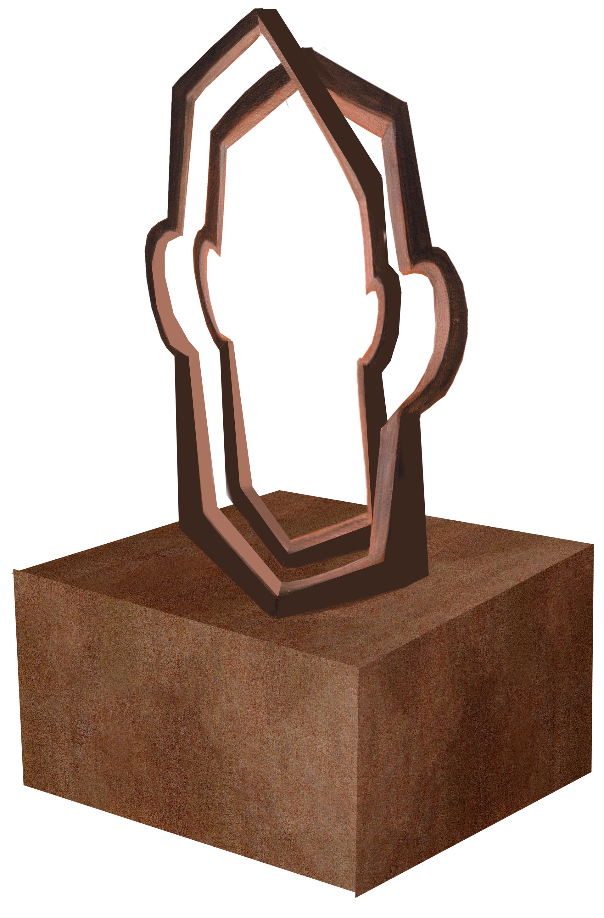 Dieser Geometrie folgend, habe ich eine Metallskultpur entworfen, die aus einem einzigen Metallband besteht. Sie formt sich zu einer Unendlichkeits